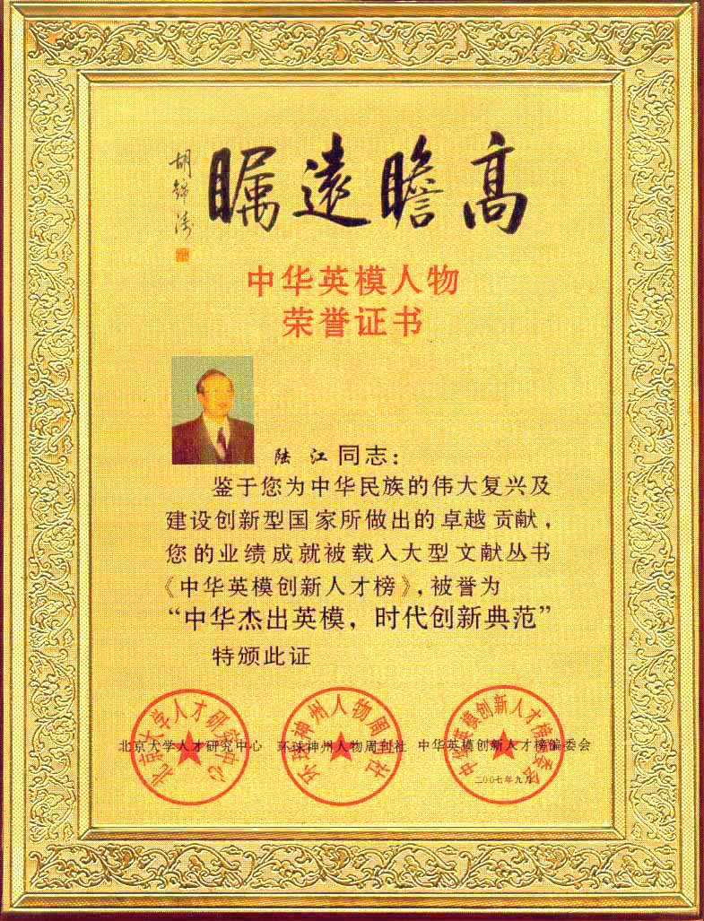 陸江的杰出貢獻(xiàn)被人民日報社評為先進(jìn)個人